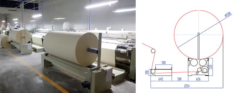 卷布速度與織布機的速度同步并自動跟蹤,操作簡便,特殊的設計性能可實現較好的卷繞效果。可以根據不同客戶的特殊要求進行設計。